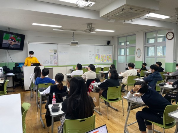 4교시: 3교시 수업을 바탕으로 골들벨 게임을 진행하여 학생들의 참여와 함께 3교시 수업을 정리하는 시간을 가졌습니다. 추가로 빙고게임을 진행하며 학생들이 수업시간에 배운 단어와 설명이 부족했던 단어를 정리하고 실제 사용해보며 학생들에게 친숙하게 인지되는 시간을 가졌습니다. 빙고게임이 끝난 후 설문조사를 진행하고 수업을 마무리 했습니다.