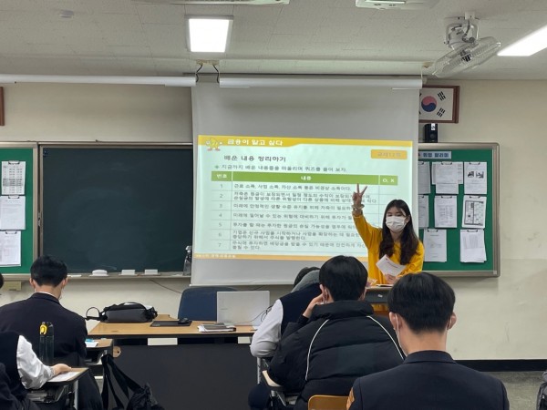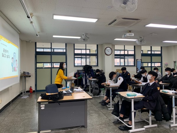 1교시에는 강사소개를 통해 수업을 시작했습니다. 그리고 금융의 의미와 금융 생활에 관련돈 소비, 소득, 저축과 투자, 부채와 신용에 대한 키워드를 설명하고 학생들의 금융 이해력을 점검했습니다. 그리고 저축에 대해 설명하면서 라이프사이클에 따른 소득, 지출의 불균형을 완화하기 위해 저축이 필요함을 상기시켰습니다. 그리고 투자에 대해 설명하고 대표적인 예시로 주식투자에 대해 보충 학습했습니다. 마지막으로 보험, 연금, 카드에 대해 설명해주며 이론 수업을 마무리하였습니다.