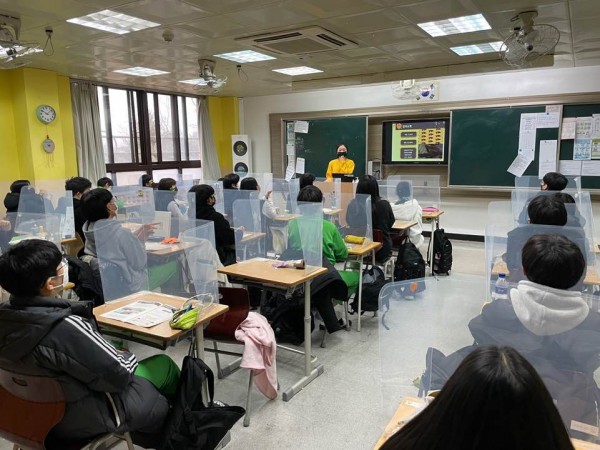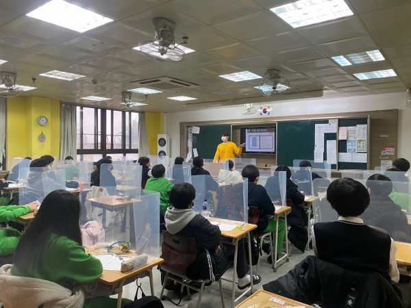 1교시는 황재윤 단원이 학생들에게 금융이 무엇이며 금융기관에는 무엇이 있는지 설명해주었습니다.