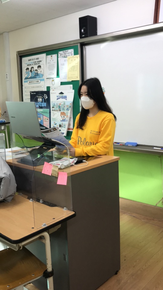 김민선 단원이 진행했습니다. 1교시 수업 내용을 바탕으로 한 OX 퀴즈 게임을 준비하여 학생들과 함께 했습니다. 문제를 낸 후에 채팅 기능을 활용하여 학생들의 답을 확인했습니다. 조금 어려운 개념은 답 확인 후에 한 번 더 설명해주었으며, 오답이 있는 경우에도 설명을 해주었습니다. 그렇게 마지막 문제까지 무사히 풀 수 있었으며, 학생들의 소감을 들어보는 것으로 2교시를 마무리했습니다.