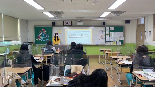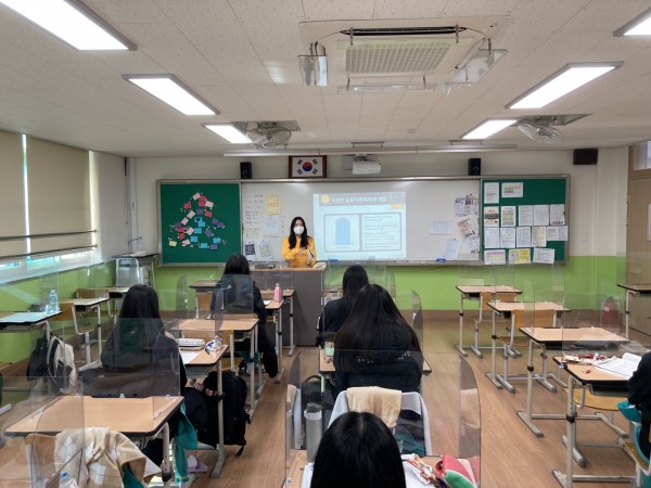 노윤정 단원이 진행했습니다. 생활 속에서의 금융의 의미에 대해 설명했고 학교 앞 편의점에서 물건을 구매하는 예시를 들며 이해하기 쉽게 설명했습니다. 금융회사의 6가지 종류에 대해 설명하며 중간중간 퀴즈로 관심을 이끌었습니다. 저축과 투자의 차이점에 대해 장단점을 각각 자세히 설명하였습니다. 탈무드 명언에 대해 풀이하며 수업을 마쳤습니다.