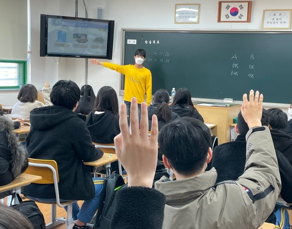 크라우드 펀딩에 대한 설명과 교재의 내용을 바탕으로 한 질의 응답 시간을 가졌습니다. 평소의 이슈에 대한 이야기들, 그와 관련된 사례들을 필기를 통해 설명하며 경제금융에 대한 호기심을 자극해 주었습니다.