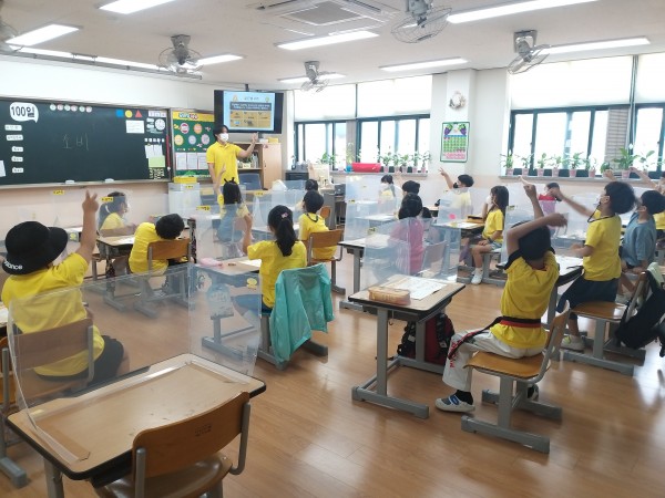 조한결 단원이 진행하였습니다. 1교시에 배운 내용을 토대로 골든벨 퀴즈와 서바이벌 ox퀴즈를 진행했습니다. 아직 1학년 학생들이다 보니 문제에 나오는 어휘나 문제의 난이도가 조금은 어려울 것 같다는 생각이 들어 어휘나 내용을 조금 더 추가적으로 설명해주었고, 어려운 문제는 넘어가고 상대적으로 쉬운 문제들을 위주로 게임을 진행했습니다. 게임이 끝난 후 점수를 체크한 후 전부 다 간식을 나눠 주는 방식으로 진행했습니다. 아이들이 ox 하나에 굉장히 좋아하고 아쉬워하는 모습이 인상깊었습니다.