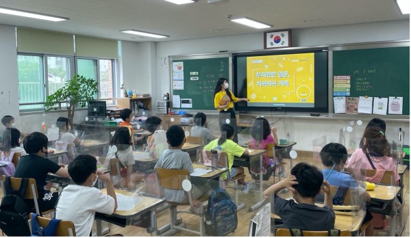 2교시에는 정서정 단원이 앞시간에 배운 학습 내용과 기초 경제용어를 PPT 자료로 준비하여 빙고게임을 진행하였습니다. 게임에서 승리하는 학생들을 대상으로 상품을 준비하여 활동 참여도를 높이는 동시에, 1교시의 학습 내용을 복습하는 시간을 가졌습니다.