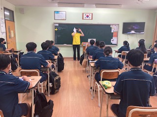 2교시: 디지털경제교실_중학교용_2교시VR, AR.’ 영상 수업을 진행하였습니다. 영상시청 전에 VR체험에 대한 주의사항을 고지한 후 VR체험을 진행한 후 영상시청을 하였습니다. VR체험을 통해 집중력을 향상시킨 후 영상시청하며 중간중간에 설명을 하며 수업하였습니다.