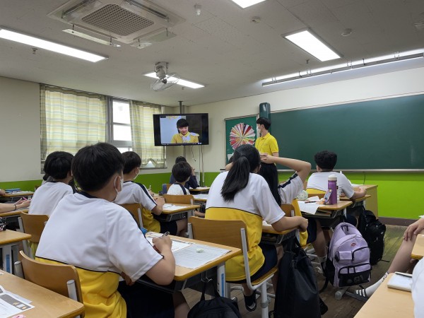 1교시 : 아이스 브레이킹으로 학생들과 충분한 친밀감을 형성한 뒤 교육 프로그램을 진행했습니다. 금융에 대한 자세한 설명을 하고, 이용해봤던 금융기관을 발표하는 학습으로 개념에 친숙하게 다가간 뒤, 따로 PPT 자료와 사진을 첨부하여 학생들의 이해를 도왔습니다. 이후 저축과 투자의 종류들을 공부해 보고, 미래에 어떤 방법으로 자산을 관리하고 싶은지 스스로 생각하는 시간을 가지며, 저축과 투자의 중요성도 함께 학습하였습니다.