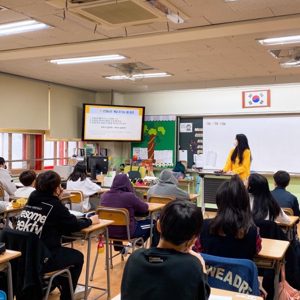 유채민 단원이 진행했습니다. 아이들에게 생소할 수 있는 단어인 “금융”에 대해 먼저 설명하고 수업을 시작하기에 앞서 평소에 들어본 금융기관의 예를 들어 이해할 수 있도록 하였습니다. 수업 중에는 아이들에게 발표를 시켜 수업 참여율을 높였습니다. 아이들이 자세히 알고 있지 않는 증권회사, 보험회사, 신용협동기구를 이미지로 직접 보여주며 이해를 도왔습니다.