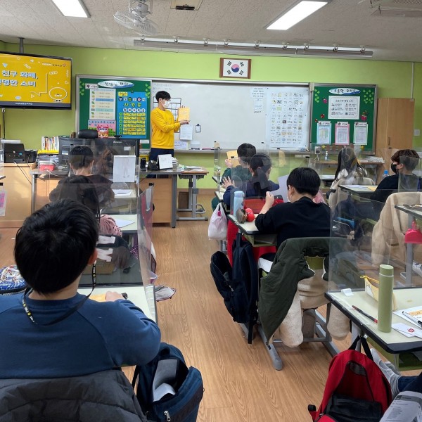 1교시 - 돈에 대한 개념과 현명한 소비에 대해 가르치며 참여수업이 이루어질 수 있도록 발표와 쉬운 예시들로 강의를 진행함.