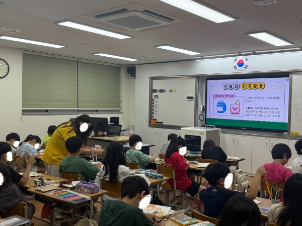 지난시간에 배웠던 내용을 복습하면서 수업을 시작했습니다. 도입 질문을 통해 아이들 저축이 무엇인지 알고 있음을 파악하고 저축해본 경험에 대해서 이야기를 나눴습니다. 학생들에게 저축이 왜 필요한지를 알게 하기 위해서 먼저 돈을 벌어본 적이 있는지, 쓰고 남은 돈은 어떻게 했는지 물어보고 발표를 할 수 있는 시간을 주었습니다. 저축의 장점을 설명하며 저축의 필요성을 강조했습니다. 제가 여행 가 본 곳과 먹어본 음식, 산 물건들에 대한 사진들을 보여주며 저축을 해서 이룬 것들에 대해 설명했습니다. 이후 아이들이 원하는 것을 우유팩 저금통에 적고 그릴 수 있도록 지도했습니다. 마지막으로 우유팩 저금통에 적었던 4가지 중에 가장 원하는 것과 그 이유를 발표하는 시간도 가지며 저축의 중요성에 대해서 상기시키며 마무리했습니다.