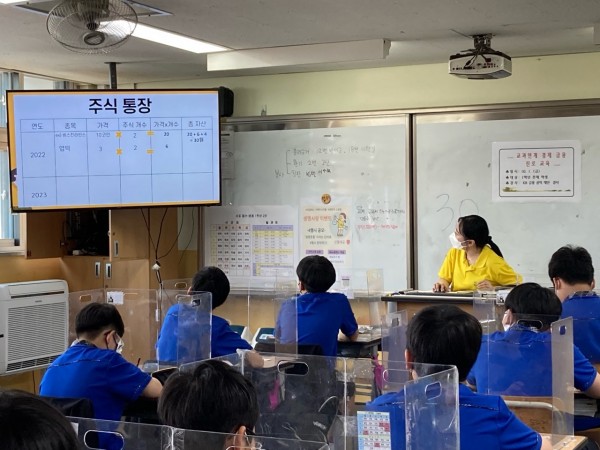 특히 힌트를 얻기 위해 적극적으로 게임에 참여하고 배웠던 이론을 책에서 찾고 환기하는 모습을 통해서 친구들의 금융에 대한 흥미를 볼 수 있었습니다. 뚜렷한 호재를 통해 기업의 주식이 증가하고 감소하는 진행상황을 통해 친구들이 궁금증을 가지고 많은 질문을 하였고, 총 3명의 투자왕과 위로의 3명을 선정해서 게임 결과를 축하했습니다.