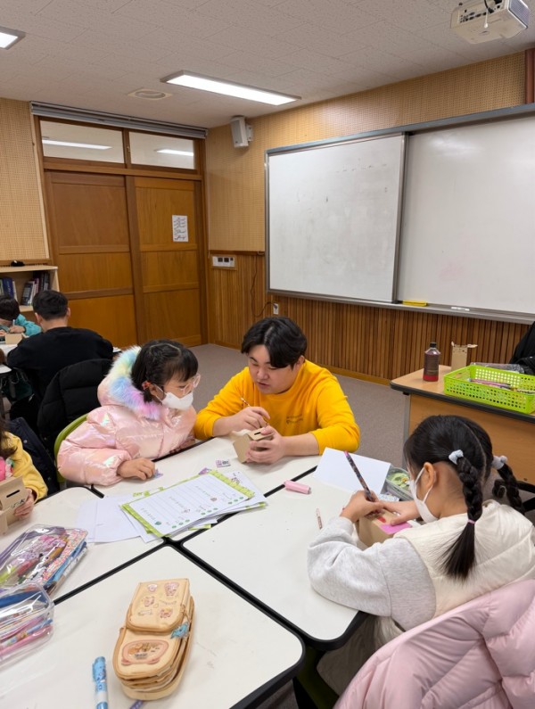 이론 수업 후에는 ‘우유팩 저금통 만들기’ 활동을 진행하였습니다. 교구를 활용해 아이들과 함께 저금통을 만든 뒤, 각자가 원하는 방식으로 저금통을 꾸미며 저축을 실천할 수 있도록 유도하며 수업을 마무리하였습니다.