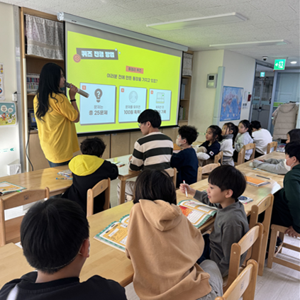 4) 교육 내용: 만원이의 이야기를 함께 읽은 후 금융의 개념에 대해 설명하며 은행의 역할에 대해 알아보는 시간을 가졌습니다. 이후 금융 공놀이 게임을 통해 금융의 개념을 보다 확실히 이해할 수 있도록 했고 통장에 거래 내역을 기록하는 방법에 대해서도 수업을 진행했습니다. 마지막으로 퀴즈 활동을 통해 배운 내용을 정리하며 수업을 마무리했습니다.