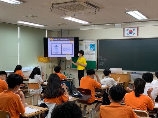 1교시(교재) : 수업 도입부에는 교재파본확인과 선생님들의 자기소개시간을 가졌고 음식사진을 통한 아이스브레이킹을 진행하여 학생들의 수업 집중도를 높였습니다. 수업중반부에는 피피티와 교재를 통해서 금융기관들과 금융과 저축, 투자 내용을 영상과 함께 수업을 진행하였습니다. 수업후반부에는 영상관련 퀴즈나 발표하고 난 후 박수를 유도하여 발표자의 성취감을 고취시켰습니다.