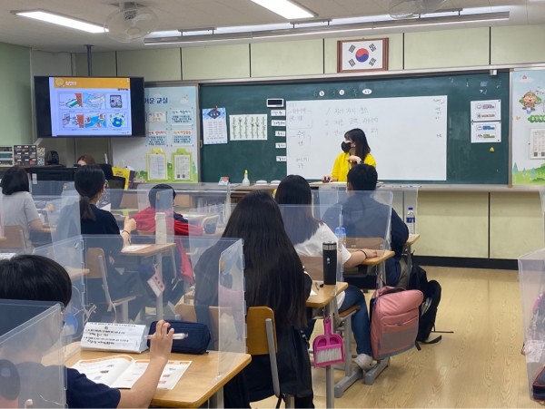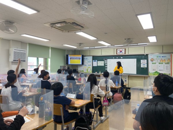 1교시: 김수빈 단원이 진행했습니다. 아이들이 금융에 대해서 쉽게 이해하도록 돕기 위해서 다양한 예시나 그림을 통해 금융기관들을 설명 하였습니다. 아이들이 금융기관에 가본 적이 있냐는 경험을 묻는 시간을 통해 금융 기관이 친근하고 쉽게 느껴 지도록 했습니다. 투자와 저축의 차이점을 이해하기 위해 투자와 저축에 해당 하는 상품들을 다양한 실생활 예시에 적용하여 수업 하였고, 중간 중간에 퀴즈를 내어 아이들이 수업에 잘 따라 올수 있도록 진행 했습니다. 마지막으로 투자의 종류에 대해서 설명해줌으로써 투자가 고위험이나 고수익이라는 점을 잘 상기 시켰습니다.