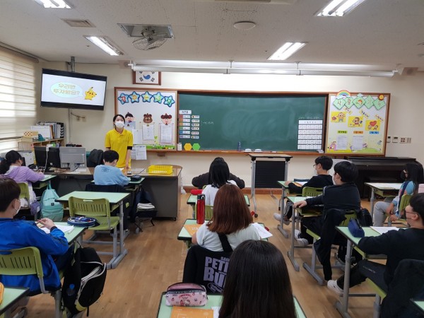 박미정 단원이 진행했습니다. '돈' 이라는 단어를 들으면 떠오르는 생각을 발표하는 것으로 수업의 문을 열었습니다. 금융의 의미와 금융기관을 배우고 증권회사 파트에 있는 주식과 채권의 차이 또한 같이 학습했습니다. 저축과 투자의 개념을 각각 배우고 영상을 통해 이 둘의 차이를 알고 발표하는 시간을 가졌습니다. 투자의 종류인 직접투자와 간접투자를 구분하고 교재에 있는 활동을 통해 배운 개념을 정리 했습니다. 니콜라 사태 뉴스영상을 활용하여 투자의 위험성을 학습했습니다. 마지막으로 핀테크의 개념을 학습하면서 이론 수업을 마무리 했습니다.