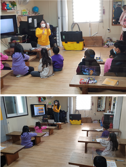 2021.01.08. 햇살지역아동센터에서 15:00~17:00시까지 수업을 진행하였습니다.