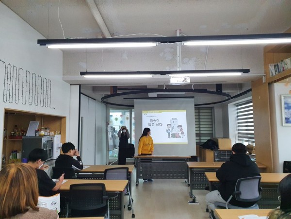 2021.01.22 고등학생을 대상으로 햇살지역아동센터에서 수업을 진행했습니다.