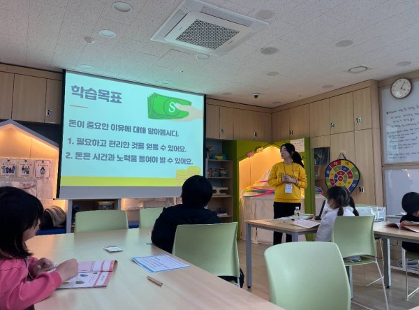 '경제보물찾기'를 진행하여 아이들이 '돈으로 살 수 있는 것'과 '돈으로 살 수 없는 것'을 구분하여 쪽지에 적도록 하였다. 팀을 나누어 보물찾기를 진행한 후, 바구니에 구분하면서 이론강의에서 학습했던 것을 활동으로 이해하도록 하였다. 각 팀 한번씩 보물 찾기를 진행하였다. 활동이 끝난 후에 돈의 가치에 대해 수업하였다. 물건을 사려면 돈이 필요하다는 내용에서 시작해서, 돈을 얻으려면 시간과 노력이 필요하다는 내용까지 아이들에게 알려주었다.
