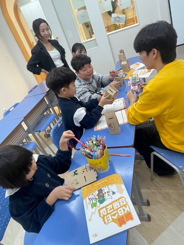 이번 수업을 통해 학생들이 돈을 단순히 쓰는 것이 아니라 ‘어떻게 쓰고, 어떻게 아낄 것인가’를 고민해보는 경험을 할 수 있어서 매우 의미 있었습니다. ‘저축’이라는 개념이 다소 추상적으로 느껴질 수 있지만, 일상에서 쉽게 접하는 사례와 질문을 통해 학생들이 흥미롭게 참여하고 자신만의 생각을 나누는 모습을 보였습니다. 다만 저학년 학생들은 아직 이자에 대한 개념을 이해하는데 어려움을 보였지만 고학번 친구들이 오히려 나서서 저학년 아이들에게 설명하는 모습에 또래 간 티칭의 좋은 점을 발견할 수 있었습니다. (그 이후 선생님들이 확실한 개념을 다시 설명해주었습니다.) 또한 학생들은 저금통 만들기 활동을 매우 즐거워하며 참여했는데 돈을 저축해 가지고 싶은걸 그리면서 서로 이야기를 나누는 모습이 인상깊었고, 뿌듯함을 느꼈습니다.
