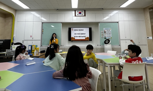 아이들이 수업에 익숙해졌는지 이야기를 읽지 못해 속상해 하는 아이들이 많을 정도로 읽기 활동에 적극적으로 참여해 주었습니다. 이번 시간의 학습 주제는 아이들에게 조금 어려워보여서 반복적으로 말해주며 습득할 수 있도록 했습니다. 골든벨 퀴즈도 정답률이 높았으며 이유까지 잘 설명해주고 모르는 내용을 친구들끼리 서로 설명해 주는 모습이 보기 좋았습니다. 또한 아이들이 생각보다 넌센스 퀴즈를 매우 잘 맞추고 좋아했습니다. 다만, '~가 아닌게 아니다.' 등의 형태로 서술된 문제들은 아이들이 이해하기에 어렵고 헷갈리겠다는 생각이 들었습니다.