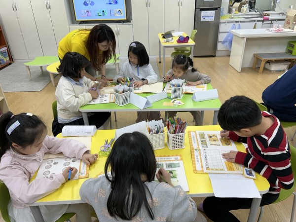 2교시(양희민) : 2차시 돈을 완성하고 세어보아요 강의 : 우리나라 화폐 종류에 대해 알려주고 또 미래의 화폐에 대해 모둠별로 논의하는 시간을 가졌습니다. 이후 화폐를 그리며 화폐 모양 머리띠를 만드는 활동을 진행했습니다. 이후에는 돈을 직접 세어보는 게임을 진행했습니다.