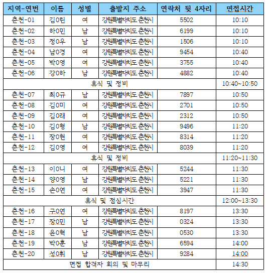 ※ 폴라리스+ 26기 춘천지역 서류 합격자 명단 및 면접 시간 안내
